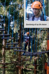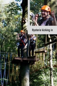 Před časem jsem navštívila lanové centrum. Tušila jsem, že to pro mě nebude snadné, že čím jsem starší (pardon, chtěla jsem říct „čím jsem déle mladá“), tím hůř snáším výšky. Ale až když mě zakšírovali a vylezla jsem těch 50 kilometrů nahoru (jo, bylo to 50 kilometrů – nejmíň!), zjistila jsem, jak velký problém mám.